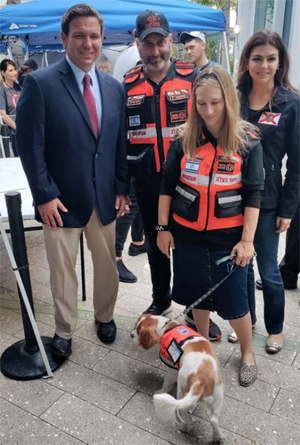 Bayta Jaffe, with Lucy, stands with Gov. Ron DeSantis of Florida. (Photo credit: United Hatzalah)